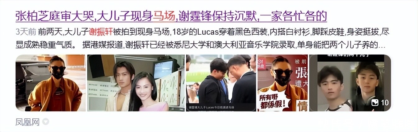 两个小的就不说了,谢振轩已经成人了,有网友遇见张柏芝在打官司时,他和父亲谢霆锋现身娱乐场所,这实在令人难以置信。